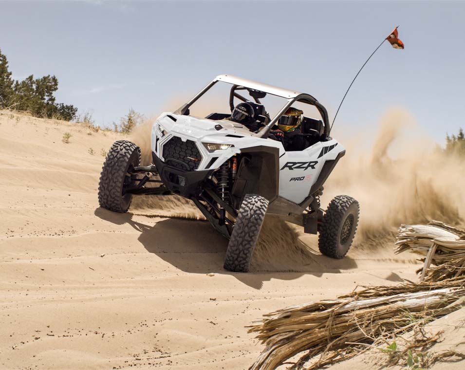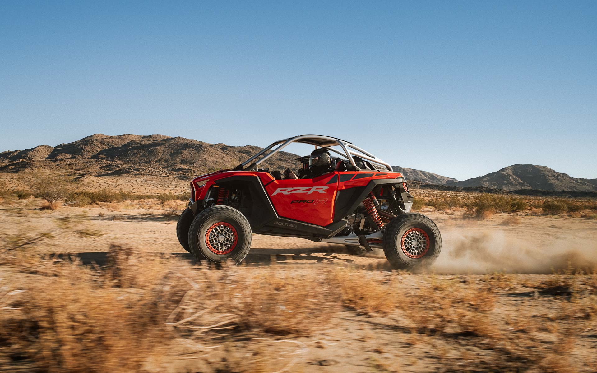 Desata la fuerza de la naturaleza con el RZR Pro R, nuestro RZR más potente con un desempeño comprobado en competición.