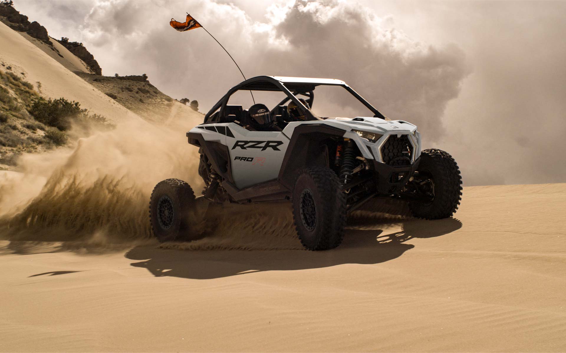 Supera a todos con una bestia todo terreno diseñada para ser el mejor. RZR Pro R entrega un desempeño asombroso para desafiar desiertos, conquistar dunas y batir récords todo terreno. Nunca vuelvas a quedar segundo. Con RZR Pro R, siempre ganas